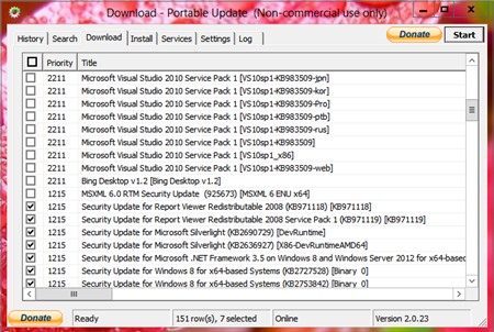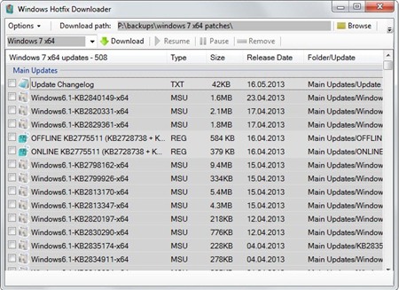 Chương trình sẽ hiển thị tên bản cập nhật, kích cỡ và ngày phát hành ngay trong giao diện, bạn đánh dấu chọn những bản vá muốn tải về. Sau đó nhấn